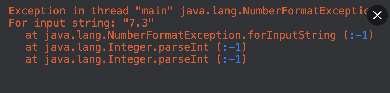 That's because the input string is double, which occurs the format error of number (Number format exception).