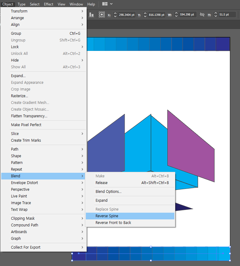 어도비 일러스트 blend는 Blend Tool로 사용할 수 있으며 그라데이션 표현, 3D 표현에 용이하다.