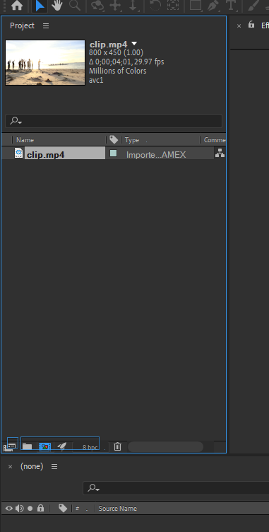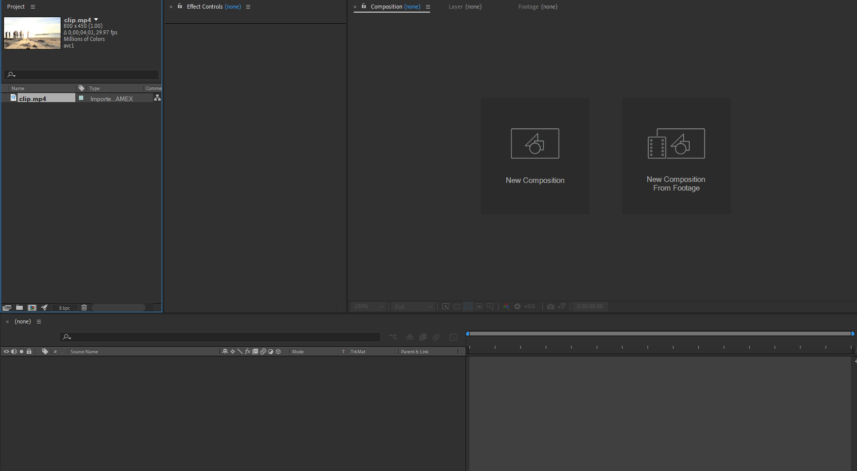 먼저 import로 영상 부를 때 create composition 하지말고 체크 푼 후