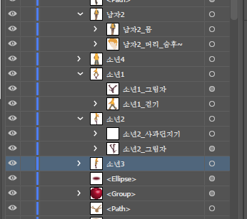 그룹지어서 함께 움직일 친구들 하나로 묶어서 레이어 정리