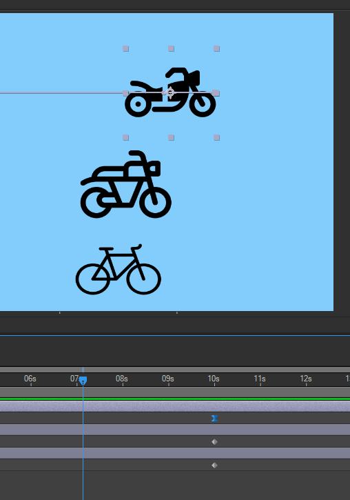 먼저, 세가지 아이콘 (오토바이 색칠된거, 짐 많은 자전거, 자전거)을 불러와서 동등한 속도로 움직이게 해보았다.