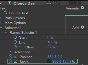 이때, 같은 애니메이션 (position, offset) 효과 주면서 크기 변경 효과 추가하려면 add > scale