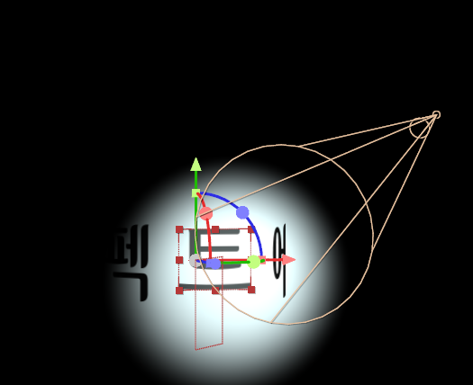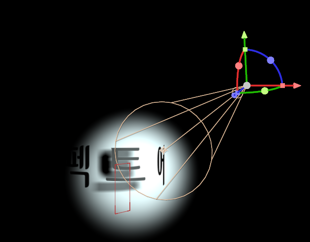 스포트라이트를 켜면 조명이 집중된 영역 (spot 영역) 안에서만 빛의 영향을 받는다.