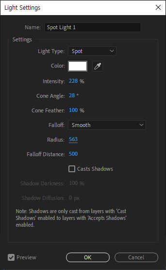 오늘은 어도비 애프터이펙트의 빛과 조명에 대한 포스팅이다. 에펙에서 조명은 네 가지가 있다.