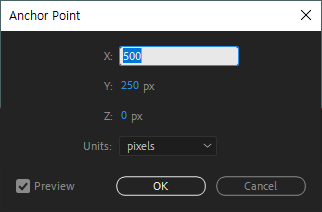 anchor point 의 units 를 선택할 수 있는데, 픽셀이나 인치, mm 같은 경우 해당 캔버스 크기를 기준으로 중심점이 이동한다고 생각하면 된다.