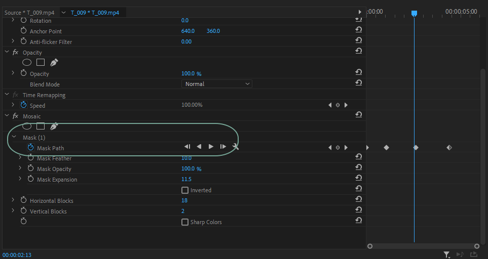 video effects의 stylize 안에있는 mosaic를 사용했다.