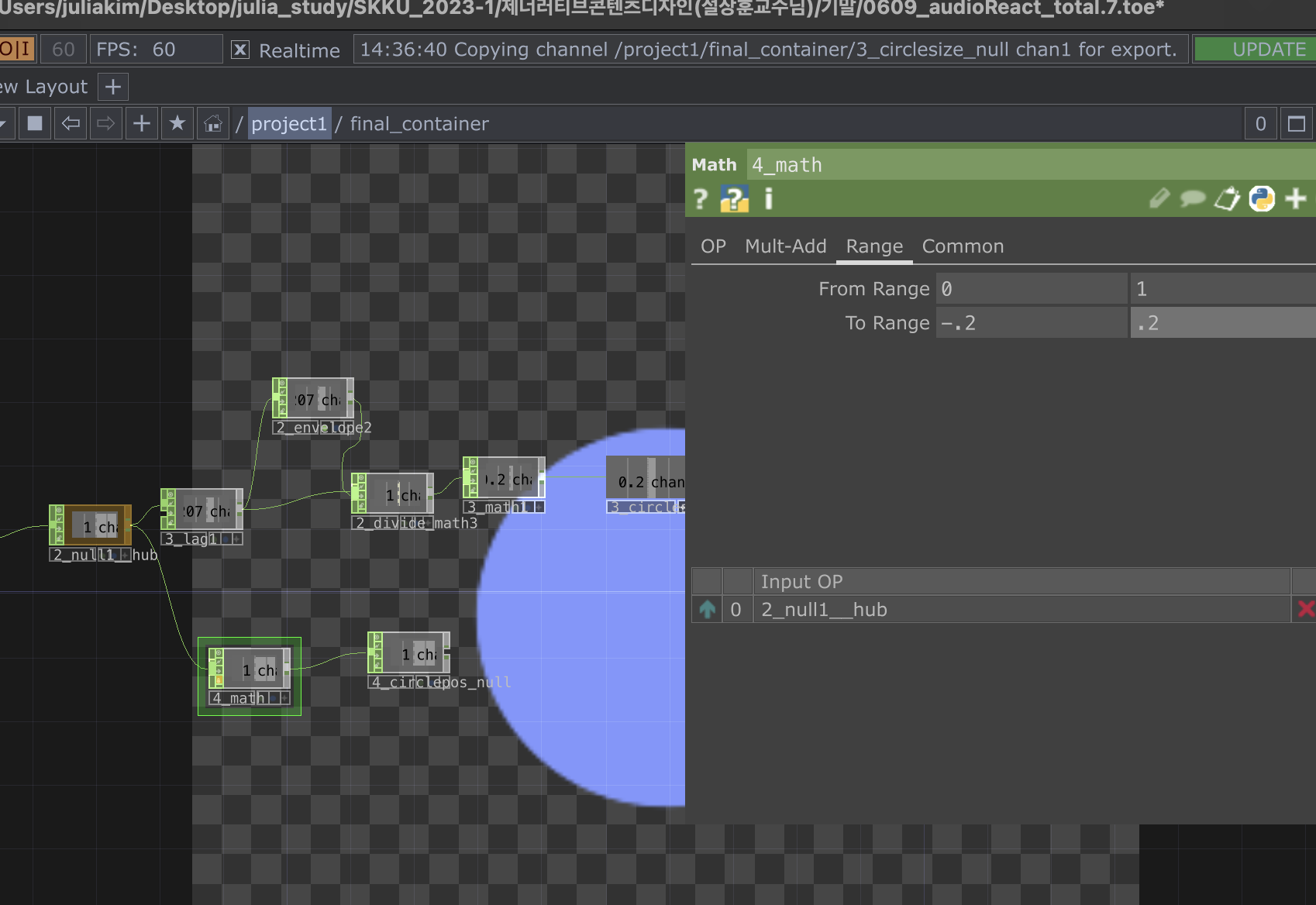 null에 들어가는 audio를 circle radius chop reference로 넣어주기